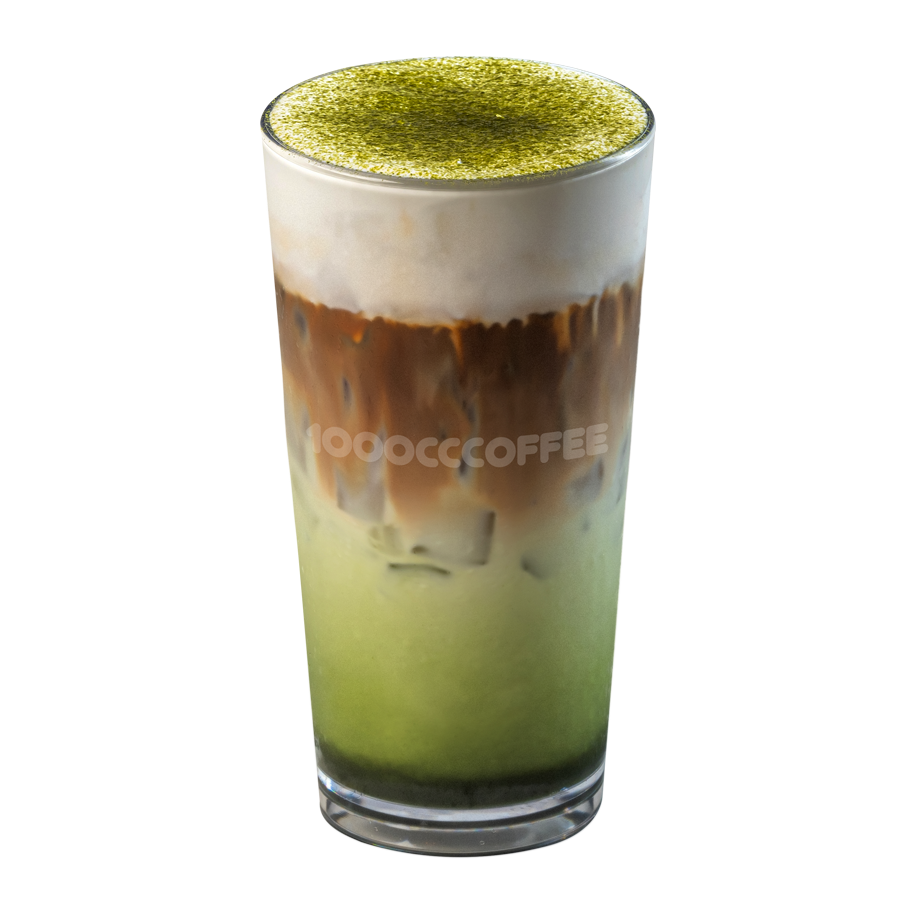 진한 말차 라떼 위에 부드럽고 달콤한 크림을 올린 음료
